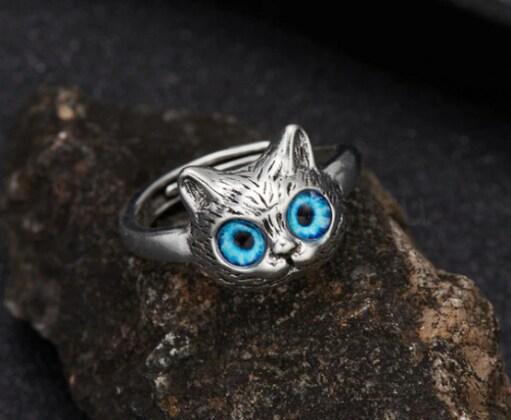 Překrásný nastavitelný prsten s motivem kočka, kotě, kočička s výraznýma očima, má překrásné tvarování do detailů., Po okrajích jemné zpracovaní. Nádherný jemný šperk pro všechny. Jeho velkou výhodou je, že se da lehce nastavit, nádherné propracovaní, ozdobné a lesklé.