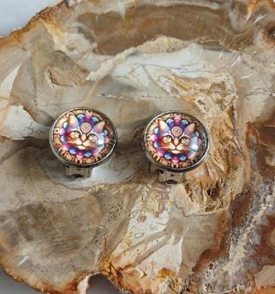 Náušnice klipsy kočka, kabošon 14 mm – nerez (BB1004)