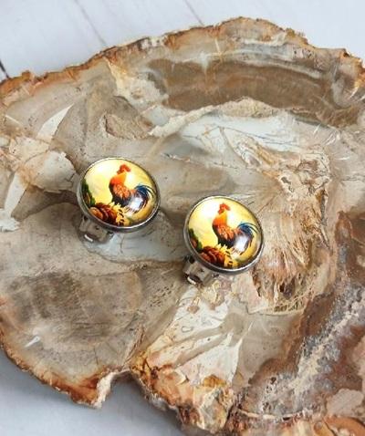 - Náušnice klipsy kohout, kabošon 14 mm – nerez (BB994)