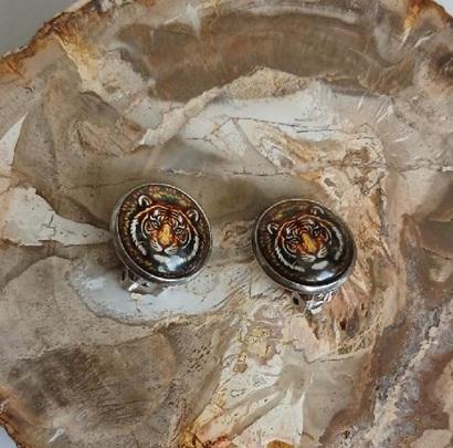 - Náušnice klipsy tygr, kabošon 14 mm – nerez (BB1002)