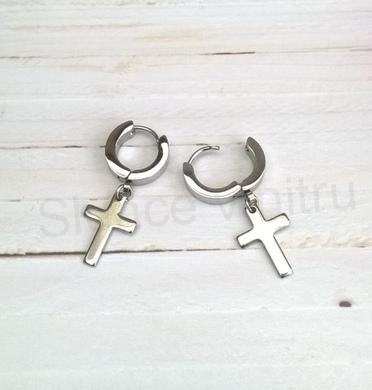 Náušnice kroužky s křížky platinové z chirurgické oceli (BB780)