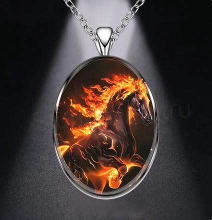 Nádherné řetízkové provedení náhrdelníku s přívěskem černého koně s plameny. Náhrdelník je velmi modní, pro všechny věkové kategorie. Řetízek je zakončený karabinkou.