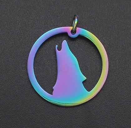 Iontové pokovování (IP) 201 přívěsek z nerezové oceli, vlk, howling Wolf, s kroužkem