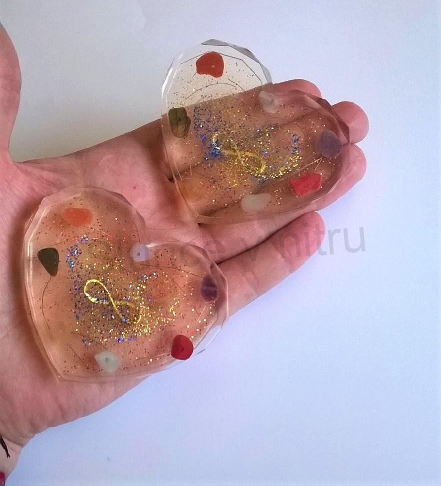 - Pryskyřičné hmatky srdíčka a dekorativní podtácky