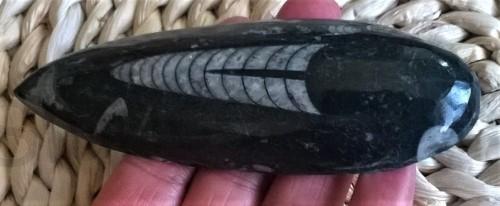 Orthoceras ("rovný roh") je rod vyhynulých nautiloidních hlavonožců omezený na mořské vápence středního ordoviku z pobaltských států a Švédska. Povrch je zdoben sítí jemných lir. Číštění pod tekoucí vodou. Každý kus je originál.