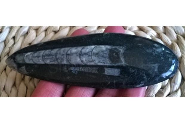 Orthoceras ("rovný roh") je rod vyhynulých nautiloidních hlavonožců omezený na mořské vápence středního ordoviku z pobaltských států a Švédska. Povrch je zdoben sítí jemných lir. Číštění pod tekoucí vodou. Každý kus je originál.
