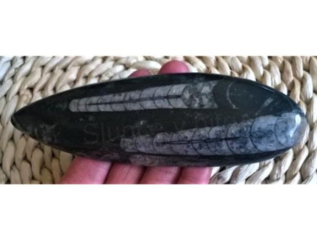 Orthoceras ("rovný roh") je rod vyhynulých nautiloidních hlavonožců omezený na mořské vápence středního ordoviku z pobaltských států a Švédska. Povrch je zdoben sítí jemných lir. Číštění pod tekoucí vodou. Každý kus je originál.