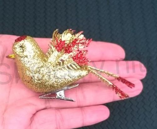Překrásný dekorační, ozdobný ptáček z ozdobných barevných glitrů, ptáček je jak živý. Zespodu má připevněnou kovovou sponu, díky které můžete ptáčka připevnit například na věnec, větvičku, záclonu či ho naaranžovat do květinových vazeb. Ptáček se hodí nejen na vánoce, slavnosti, ale i na jiné příležitosti, třeba i jako krásná ozdobná dekorace.