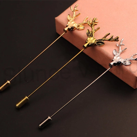 Krásná kovová pánská brož do klopy ve tvaru jelenů, vhodná na jakoukoliv příležitost, buďte lvem salonů. Tímto jemným doplňkem zazáříte na každé oslavě, či pracovní schůzce. Brož se zapiná kovovým uzávěrem, tím zabráníte ztratě, nebo vypadnutí brože.