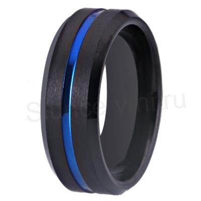 Elegantní, snubní, modní, punck, prsten z černé chirurgické oceli s karbonovým modrým páskem, v celém černém provedení. Tato kombinace působí velmi nadčasově. Prsten je velmi originální a zajimavý. Prsten je pevný a dokonalý, není barvený. Dokonalý dárek.
