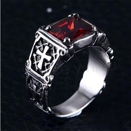 Pánský prsten templářský kříž s červeným zirkonem – velikost 54 (BP563)