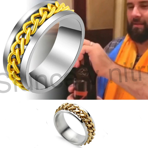 Pánský prsten z chirurgické oceli a řetízkem (BP400)
