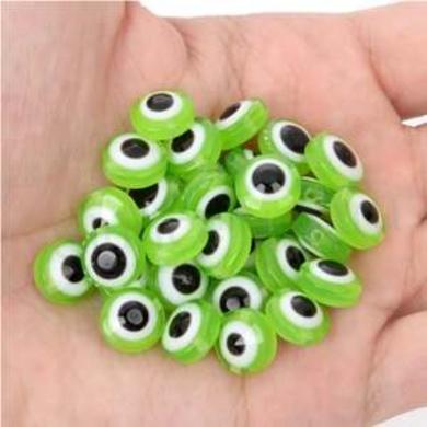 Plastový korálek, podobajicí se oku. Použivá se převážně do nárámků, náhrdelníků Hamsa. Velmi oblíbené.