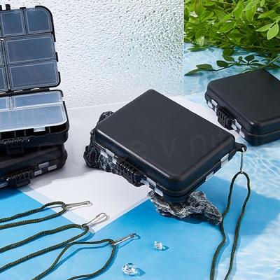 Plastový úložný box na rybářský háčky, rybářské příslušenství, černý, 105 x133 x 34 mm. K boxu dostanete závěsnou šňůrku na ruku, pomocných překližek je 10 kusů.