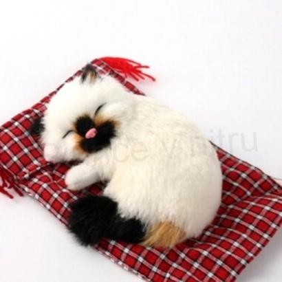 Imitace srsti kočičky přilepená na vnější straně plastové duté tvrdé skořápky. Látková podložka a kočka jsou slepené k sobě, takže ji nemůžete sundat. Kočičkay se nebudou pohybovat, štěkat ani svítit. Spící kočka (nemůže se hýbat, nemůže štěkat, nemá bateri)