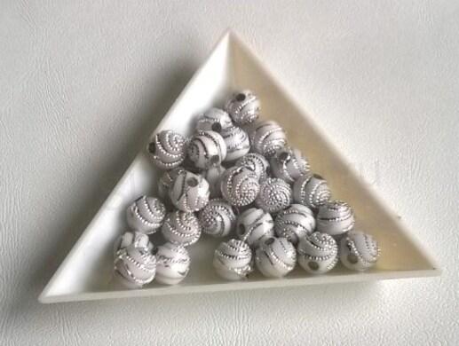 Pokovený barevný korálek se spirálkou bílý (AC281)