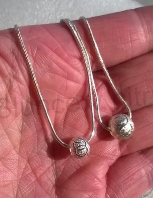 Zajimavý postříbřený řetízkový náhrdelník s postříbřenou kuličkou, korálkem s jemnými rytinami kruhů, kroužků. Krásný jednoduchý šperk, který se hodí na každou příležitost svatba, oslava, atd.