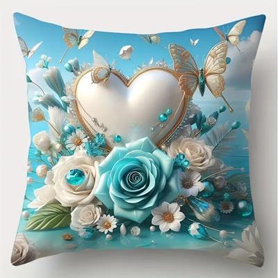 Povlak na polštář se vzorem srdíček s modro-bílými růžemi, dekorativními motýly a perlovými vzory. Moderní styl, jednostranný potisk, zapínání na zip, ruční praní, vyrobeno z polyesteru. Tento povlak na polštář je měkký a útulný, vyrobený z prémiového polyesteru. Je ručně šitý, je ideální doplňkem pro vaši pohovku, postel nebo židli. Jeho versatility ho činí vhodným pro dekoraci různých prostor, jako je vaše pohovka, postel, auto nebo obývací pokoj. Vytvořen z odolných a měkkých materiálů, tyto povlaky jsou příjemné na dotek a jednoduché na údržbu. Vyrobeno z polyesteru příjemný a měkký na omak; žádné vyblednutí nebo roztřepení. Barevně sladěný neviditelný nebo skrytý zip pro elegantní vzhled. Dodává vaší domácí dekoraci teplý a moderní vzhled, vhodný do obývacího pokoje, ložního prádla, pohovky, křesla, ložnice, kanceláře atd. Vybírejte podle variant, nabizíme 4 různé varianty.