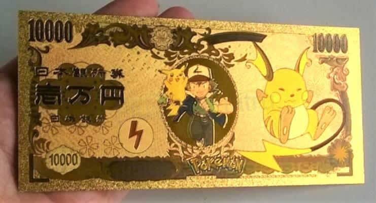 Pozlacená bankovka pokemon.( hezká do sbírky nebo jako dárek ). Bankovka je oboustranná na každé straně jiný obrázek. Plakety jsou nepromokavé, pružné, pevné a lesklé. Nabízíme více variant, stačí si zvolit jedno s čísel.
