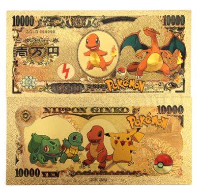 Pozlacená bankovka pokemon, plaketa 24 karatovým zlatem.( hezká do sbírky nebo jako dárek ). Bankovka je oboustranná na každé straně jiný obrázek. Plakety jsou nepromokavé, pružné, pevné a lesklé. Nabízíme více variant, stačí si zvolit jedno s čísel.