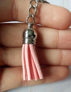 Přívěsek na klíče - kožený střapec růžový (D997)
