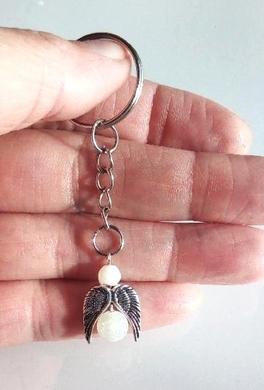 Klíčenka je vyrobena z kvalitního, nezávadného materiálu a minerálním andílkem na. Vhodná na kabelky, tašky, batohy, peněženky, ozdobná dekorace.