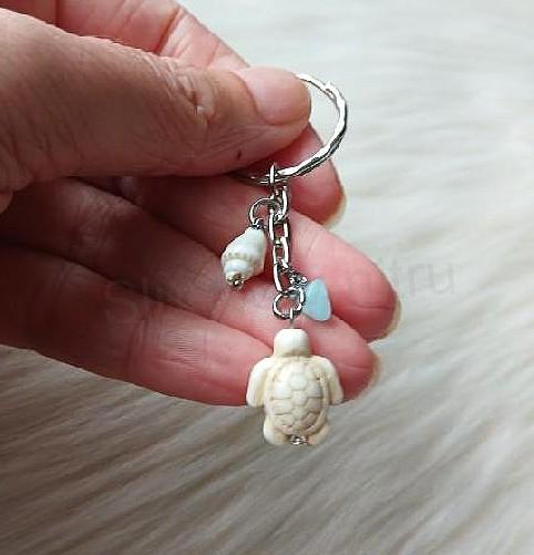 Krásná minerální klíčenka, přívěsek na klíče želva tyrkys, shell, akvamarín. Hodí se na tašky, kabelky, klíče, batohy a jiné.