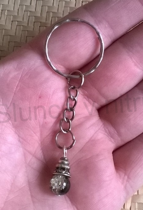 Klíčenka, talisman je vyrobena z kvalitního, nezávadného materiálu. Zvoneček s praskanou kuličkou pro štěstí. Vhodná na kabelky, tašky, batohy, peněženky, ozdobná dekorace.