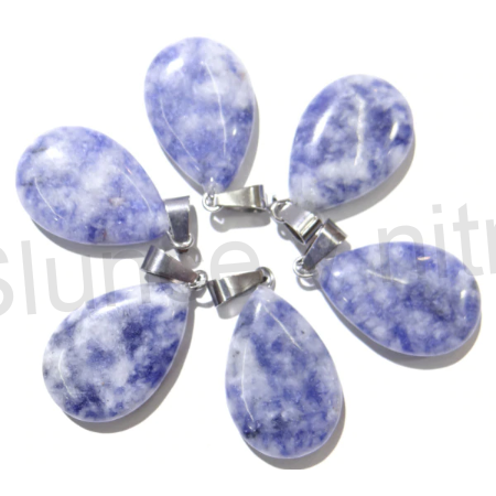 Netradiční přívěšek Sodalit ve tvaru kapky. Prosím berte na vědomí, že každý kámen je jiný, proto je každý originál, výběr je náhodný.