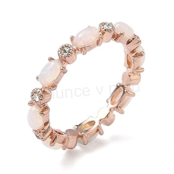 Prsten ozdobený kubickým zirkoniem a opálovým nálezem oválky velikost 19,1 mm (BP553)