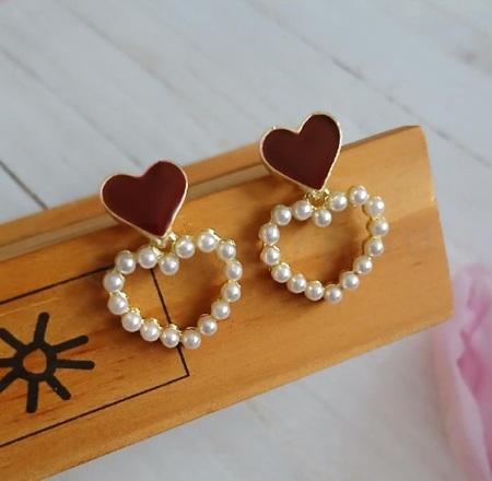 Puzetové visací náušnice spojují jemnost, eleganci a romantický styl. Horní část tvoří malé smaltované srdce ve zlatém rámečku, zatímco spodní část zdobí výrazné perličkové srdce, které dodává náušnicím luxusní a něžný vzhled. Smaltované srdce symbolizuje lásku, něhu a harmonii, perličky zase čistotu, ženskost a jemnost. Náušnice jsou lehké, pohodlné a doplněné silikonovými zarážkami pro bezpečné nošení. Skvěle se hodí k elegantním outfitům, romantickým šatům i každodennímu nošení.