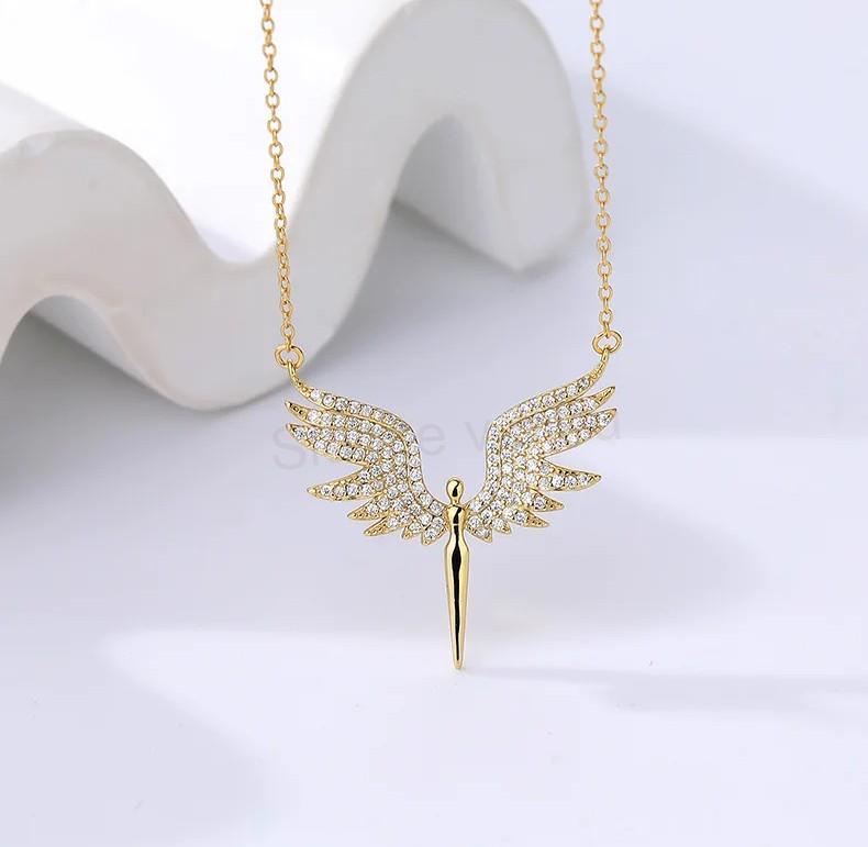 Elegantní andělská křídla přívěsek s křišťálovým (zirkonovým) temperamentem, vhodný pro různé příležitosti. Vysoce kvalitní slitina mosazi s lesklou povrchovou úpravou, vyzařuje světelný lesk, který doplňuje jakýkoli outfit. Lehký luxusní šperk kombinuje tento náhrdelník s jemnou eleganci a krásním zpracováním, ideální pro ty, kteří hledají dotek lehké elegance. Náhrdelník má luxusní mikro - vykládaný zirkon, který vytváří třpytivý design andělských křídel, který vyzařuje eleganci a sofistikovanost. Řetízek je z nerez oceli, přívěsek je z mosazi a třpytivý zirkon CZ .