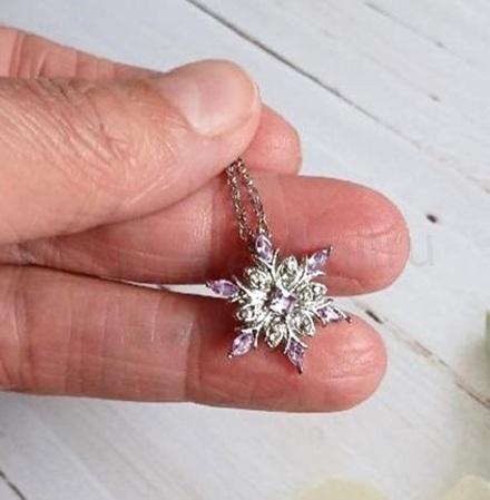 Krásný řetízkový náhrdelník s vločkou s malými fialovými zirkonky. Vločka může být jako talisman, nebo pro štěstí, či jako dárek. Na každodenní nošení, pro jakoukoliv příležitost.