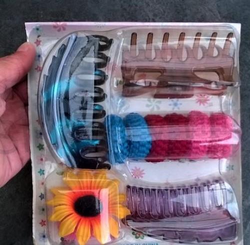 Originální sada, souprava různých skřípců a gumiček do vlasů, určitě potěší každou ženu, či dívku, která hledá více kosmetických věcí najednou. Sada má celkem 3 skřípce a 6 x silnější gumičky, 1x ozdobnou gumičku s kytičkou.