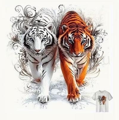 Tato moderní vinylová nažehlovací nášivka s motivem dvou tygrů je vytištěná na kvalitním, ekologickém vinylu, který se po nažehlení pevně spojí s textilem a drží dlouhodobě. Povrch je hladký, pružný a připomíná klasické potisky na tričkách — odolný proti praní i běžnému opotřebení.