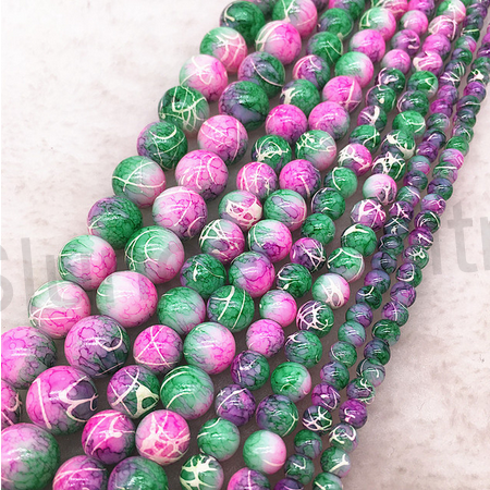 Super kvalitní skleněné barevné korálky, v barvě duhy. Kvalita AAA+++. Korálky jsou skvělým doplňkem do nárámků, náušnic, či přívěšku. Jejich barva je netradiční, ikdyž jsou skleněné přesto nejsou těžké. Korálky jsou velmi oblíbené pro jejich pestrobarevnou barvu. Korálky vypadají jak minerál dračí achát. Barvy se můžou mírně lišit.