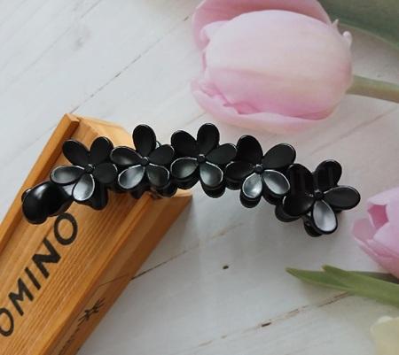 Skřipec, banánek do vlasů ozdobný kytička, délka 10 cm černá mat (H522)