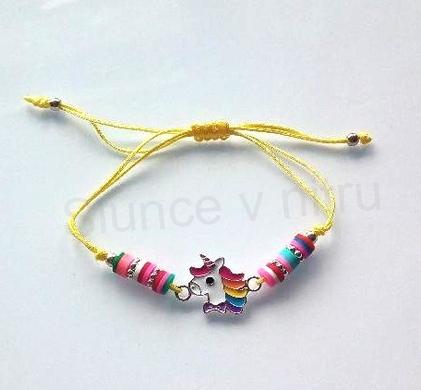 Šňůrkový náramek na ruku jednorožec žlutý (BC583)