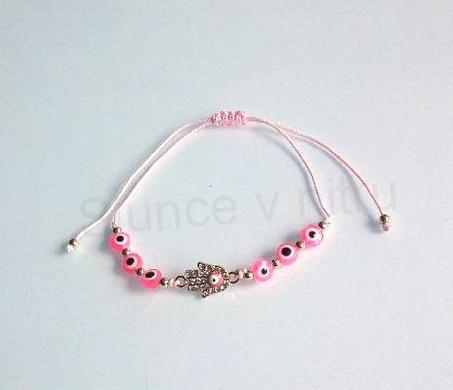 Šňůrkový náramek na ruku Swarovski elements ruka Fatimy - hamsa s okem tmavě růžový (BC582)skladem 2 ks189,00 Kč/ ks