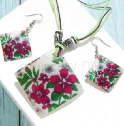 Krásná souprava, sada šperků z lastury, mušle, pro dívky, či ženy v jiném barevném provedení. Hladké, lesklé. Souprava se skladá ze 3 dilů - náušnice, stužka a přívěšek. Nádherná kombinace vytvářejicí zajímavý efekt šperku. Náušnice jsou visacího typu. Je to elegantní sada modních doplňků. Hodí se všude jak na slavnosti, práce, tak výročí. Krásný český styl, velmi elegantní.