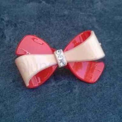 Barevná spona s mašličkou a čirými kamínky, vám pomůže rychle vytvořit efektní účes.