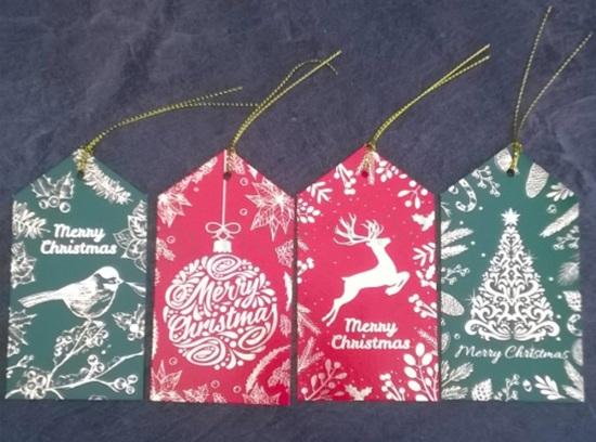 Vánoční jmenovky jsou nepostradatelným dekoračním prvkem při balení dárků. Zabalte dárky a přivažte k nim jednu z těchto krásných kartiček, zdobených zlatou lesklou barvou v podobě vánočních obrázků a nápisem Merry chrystmas (Veselé vánoce), na druhou stranu můžete napsat jméno obdarovaného. Ke každé jmenovce je přidaná luxerová šňůrka ve zlaté lesklé barvě na přichycení.