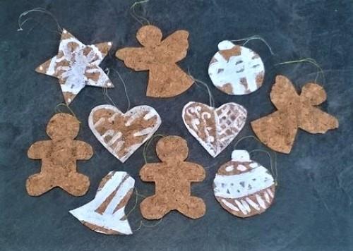 Krásné jednoduché korkové ozdoby na vánoční stromeček, nebo jako dekorace do věnců, pověšení na různé větvičky. Korkové ozdobičky jsou vyráběné dětmi.