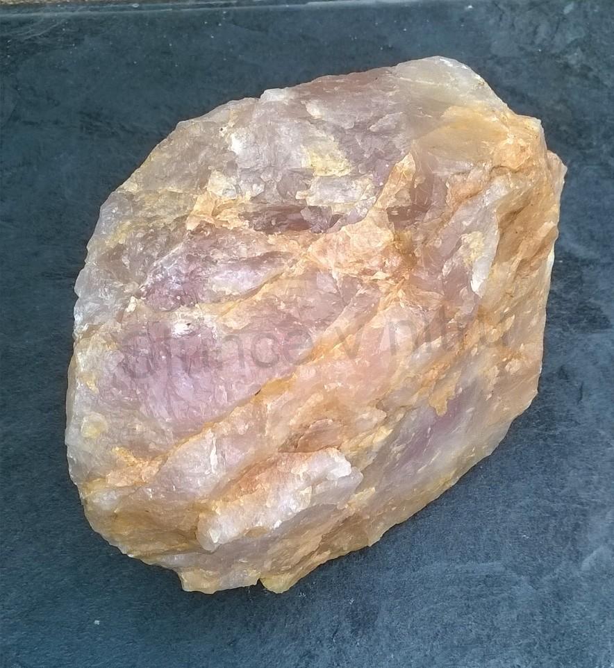 Krásný přírodní růženín jemně průsvitný a lesklý s limonitem obtáhlí kolem dokola, růženin také obsahuje bílí křemen