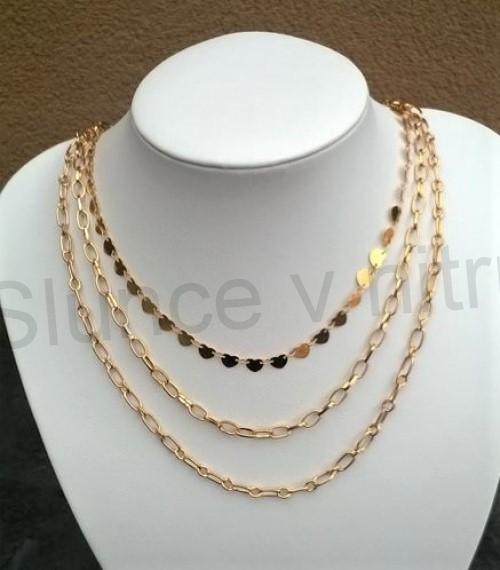Vícevrstvý náhrdelník s klasickými řetízky a jeden celý srdíčkový ve formě placiček z nerez oceli, spojený do jednoho, plus nastavitelný řetízek. Zapinaní na karabinku. Velmi vhodný dárek, nebo skvělý elegantní modní doplněk.