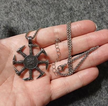 Vikinský náhrdelník je výrazný šperk inspirovaný severskou kulturou a symbolikou ochrany, síly a životní cesty. Přívěsek má podobu runového slunečního kola, které je zpracováno v oboustranném 3D provedení, takže působí masivně a detailně z každého úhlu.