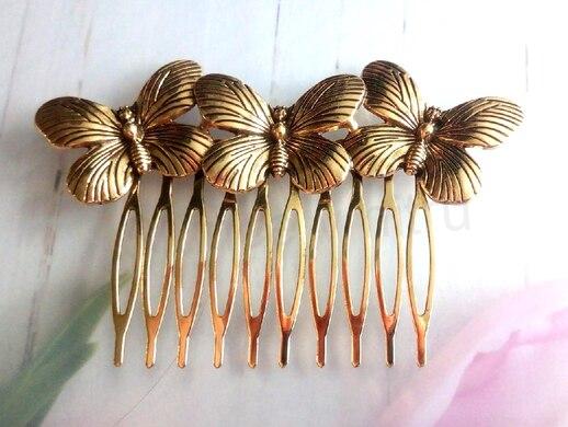 - Vintage, retro hřebínek do vlasů s rukojetí motýlci (H594)