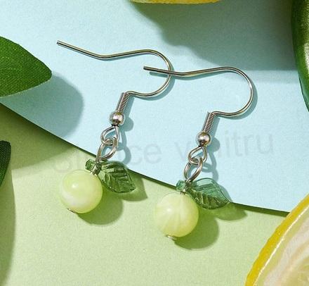 Visací náušnice ve tvaru třešně. Afroháčky jsou z nerez oceli, korálek je z pryskyřice a zelený lísteček je z akrylu. Drobné visací náušnice vhodné jak pro dívky, ženy, pro každodenní nošení.