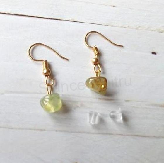Visací drobné prehnitové, prehnit (vzácný minerál) náušnice. Náušnice tvoří prehnitové minerální zlomky vysoké kvality a afroháčky z ošetřeného kovu. Prosím berte na vědomí, foto je jen ilustrační, každý pár náušnic je originál. Každý kámen je jiný. Náušnice mají silikonovou zarážku lepší jiětění proti ztrátě.