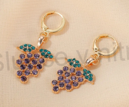 Překrásné visací zirkonové náušnice do tvaru ovoce, hroznu, hrozen, víno, hrozny. Potěšte se šperkem od srdce. Tyto kvalitní a smysluplné šperky inspirované láskou, laskavostí a neobyčejnou krásou. Náušničky mají svůj vlastní jedinečný význam.Dobré kvality, svou zajimavostí, Náušnice mají kruhové zapinání.